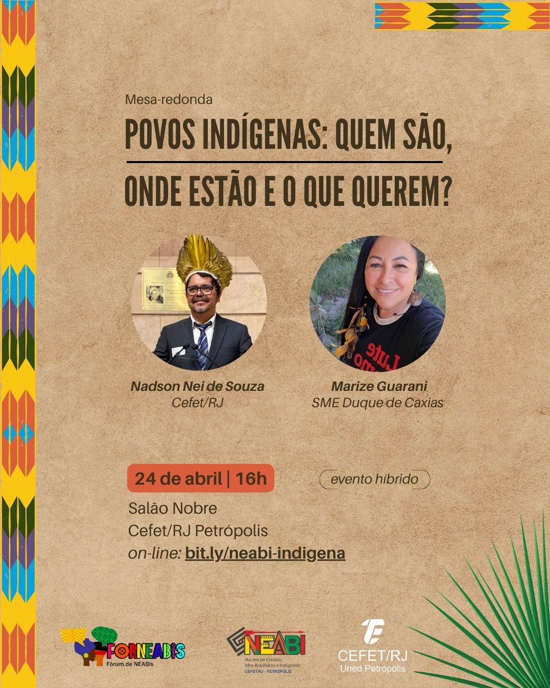 O Núcleo de Estudos Afro-Brasileiros e Indígenas (Neabi) do Cefet/RJ Petrópolis realiza no próximo dia 24 de abril (quarta-feira), às 16h, a mesa-redonda “Povos indígenas: quem...