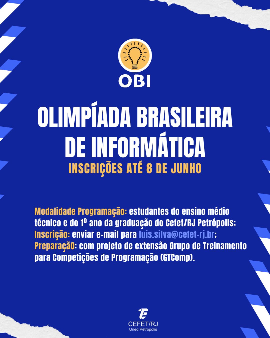 A 26ª Olimpíada Brasileira de Informática (OBI 2024) está com inscrições abertas até o dia 8 de junho. Organizada pelo Instituto de Computação da Unicamp, a competição busca...