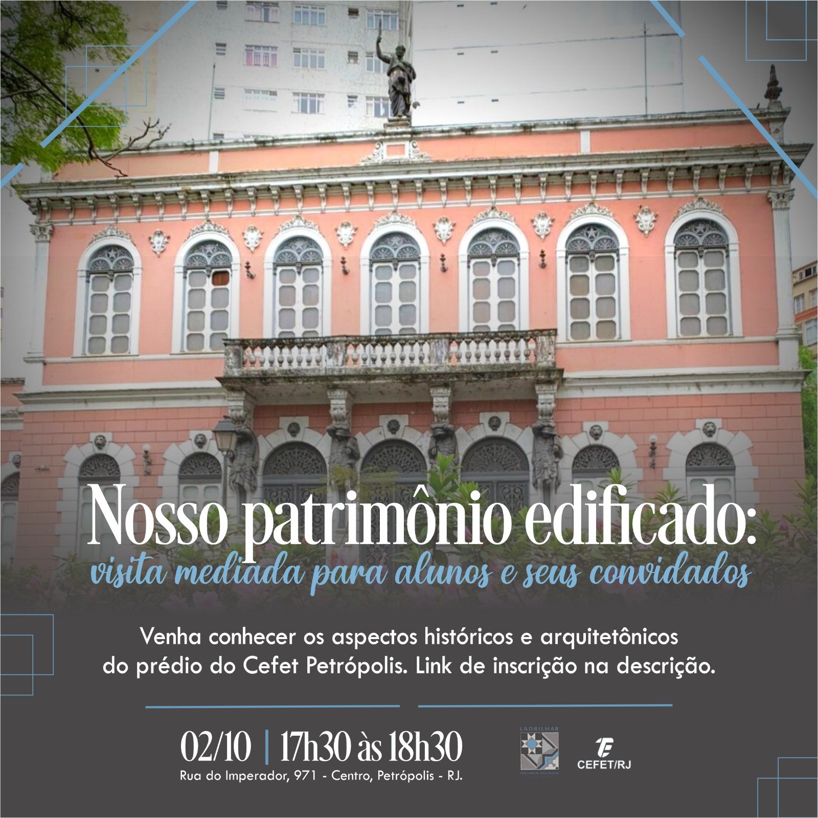 Na próxima segunda-feira, dia 2 de outubro, das 17h30 às 18h30, o projeto de extensão “Ladrilhar: percursos inclusivos pelo Cefet/RJ Uned Petrópolis” irá promover uma visita...
