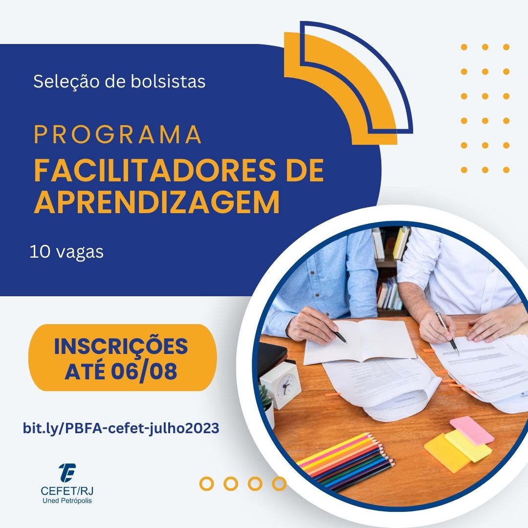 Estão abertas, até o dia 6 de agosto, as inscrições para o processo seletivo do Programa de Bolsas para Facilitadores de Aprendizagem (PBFA). O prazo de inscrição foi prorrogado e...