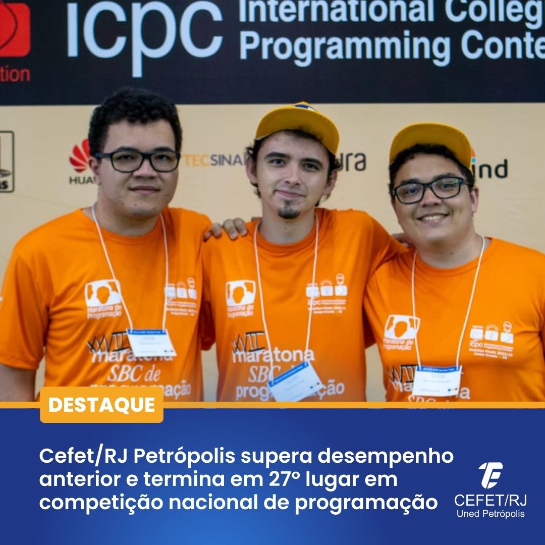 Em sua terceira final brasileira consecutiva na Maratona de Programação, o Cefet/RJ Petrópolis fez a sua melhor participação na competição, subindo 13 posições em relação a 2022...