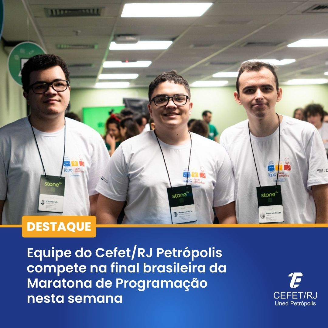 De 16 a 18 de março, o Cefet/RJ Petrópolis vai representar a cidade imperial na final brasileira da Maratona de Programação. O time “Crias do Douglas” – formado por Eduardo Gomes,...