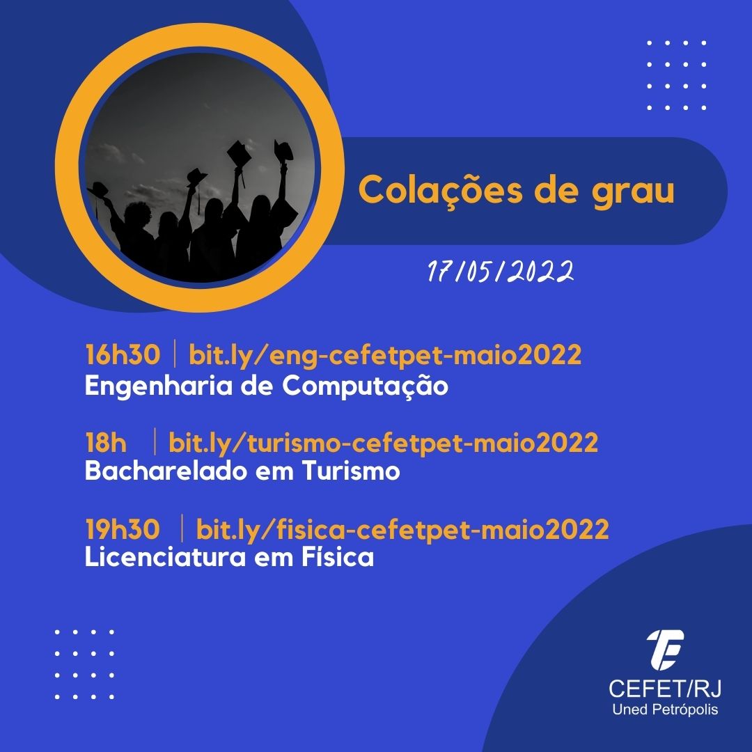 O Cefet/RJ Petrópolis realiza na próxima terça-feira, dia 17 de maio, a cerimônia de colação de grau dos alunos concluintes dos cursos de Engenharia de Computação, Licenciatura em...
