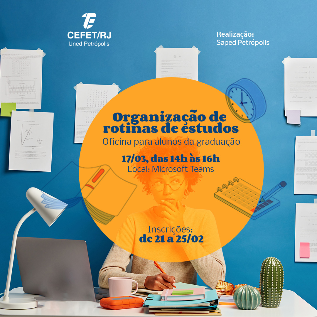 A Seção de Articulação Pedagógica (Saped) do Cefet/RJ Petrópolis vai promover no dia 17 de março, das 14h às 16h, a oficina “Organização de rotinas de estudos”. O evento, que...
