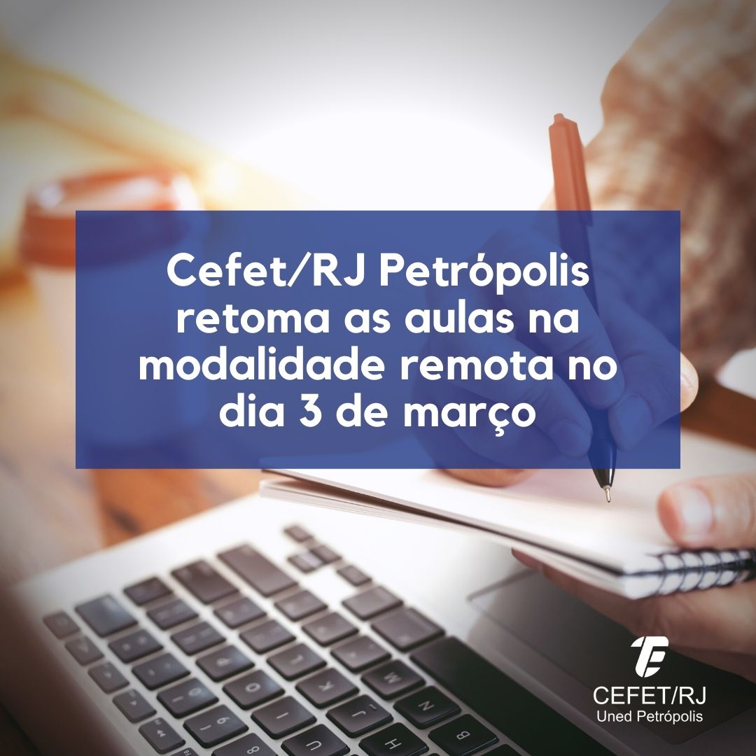 O Cefet/RJ Petrópolis retomará suas atividades acadêmicas na próxima quinta-feira, dia 3 de março, na modalidade remota, com a reposição (preferencialmente na modalidade assíncrona)...