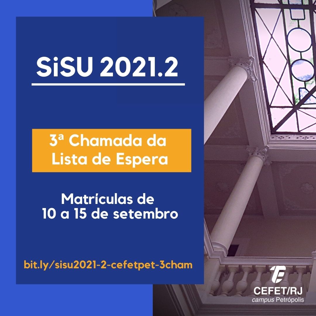 Foi divulgada nesta quinta-feira, dia 9 de setembro, no site do Cefet/RJ, a listagem dos candidatos selecionados na 3ª Chamada da Lista de Espera do Sisu 2021 2º semestre. Confira a...
