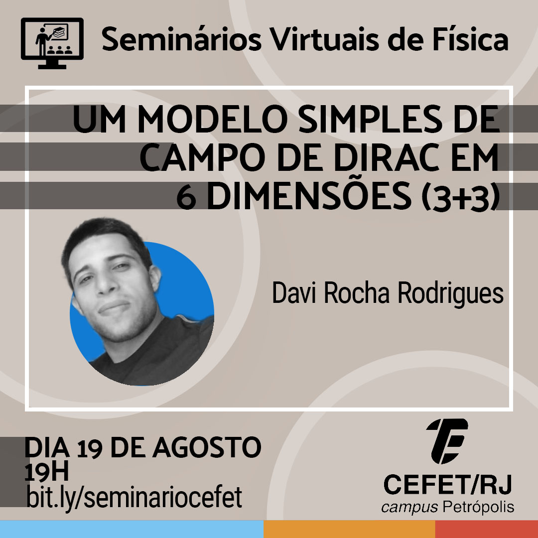 O Seminário Virtual de Física do dia 19 de agosto vai trazer como tema “Um modelo simples de campo de Dirac em 6 dimensões (3+3)” e será ministrado pelo ex-aluno de Licenciatura em...