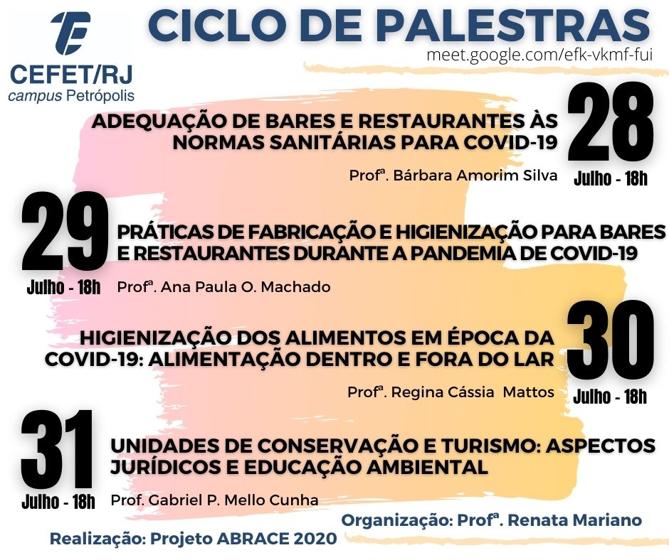 Mesmo durante a pandemia do novo coronavírus, os trabalhos no Cefet/RJ campus Petrópolis não param. Na próxima terça-feira, dia 28 de julho, terá início um Ciclo de Palestras On-line...