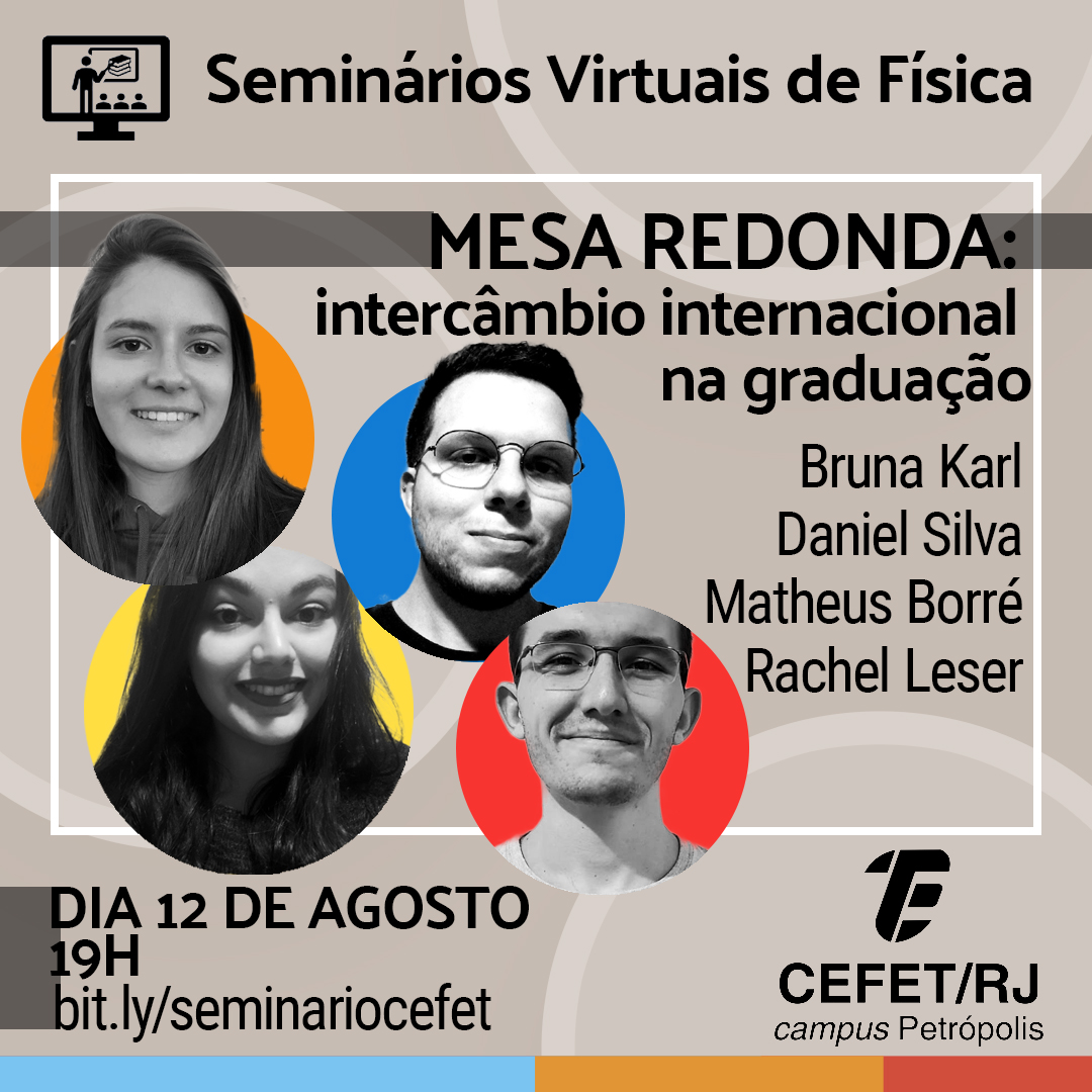 Alunos e ex-alunos de Licenciatura em Física do Cefet/RJ campus Petrópolis vão realizar a “Mesa-redonda: intercâmbio internacional na graduação” no próximo encontro do...