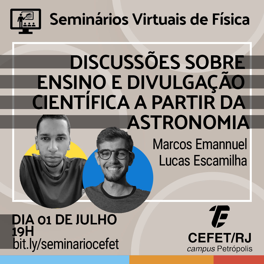 Campus Petrópolis e campus Nova Friburgo vão dialogar no próximo Seminário Virtual, quando seus alunos de Licenciatura em Física Marcos Emmanuel e Lucas Escamilha, respectivamente,...