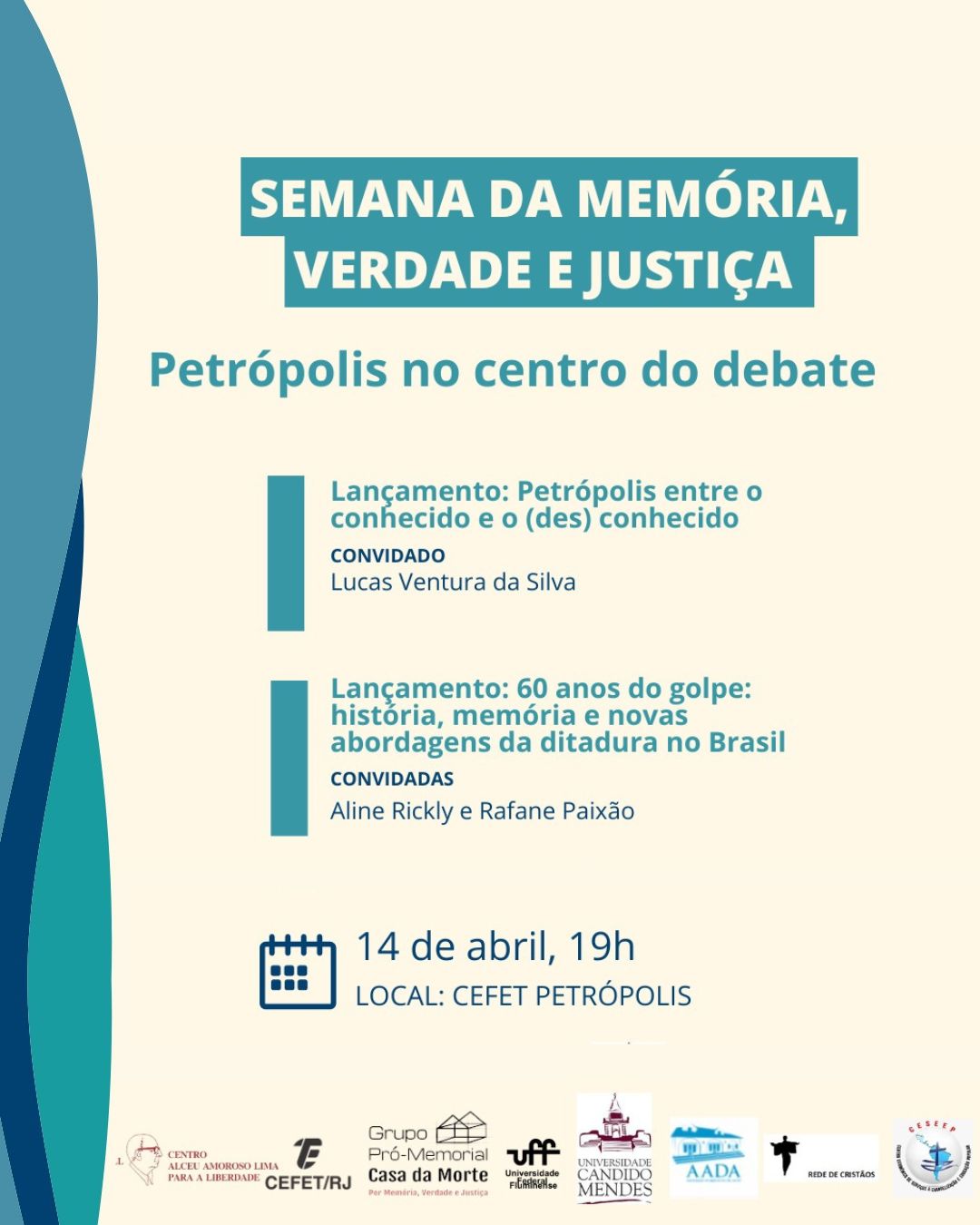 Na próxima segunda-feira, dia 14 de abril, às 19h, o Cefet/RJ Petrópolis será palco do lançamento de duas obras que abordam os impactos da ditadura no Brasil: Petrópolis entre o...