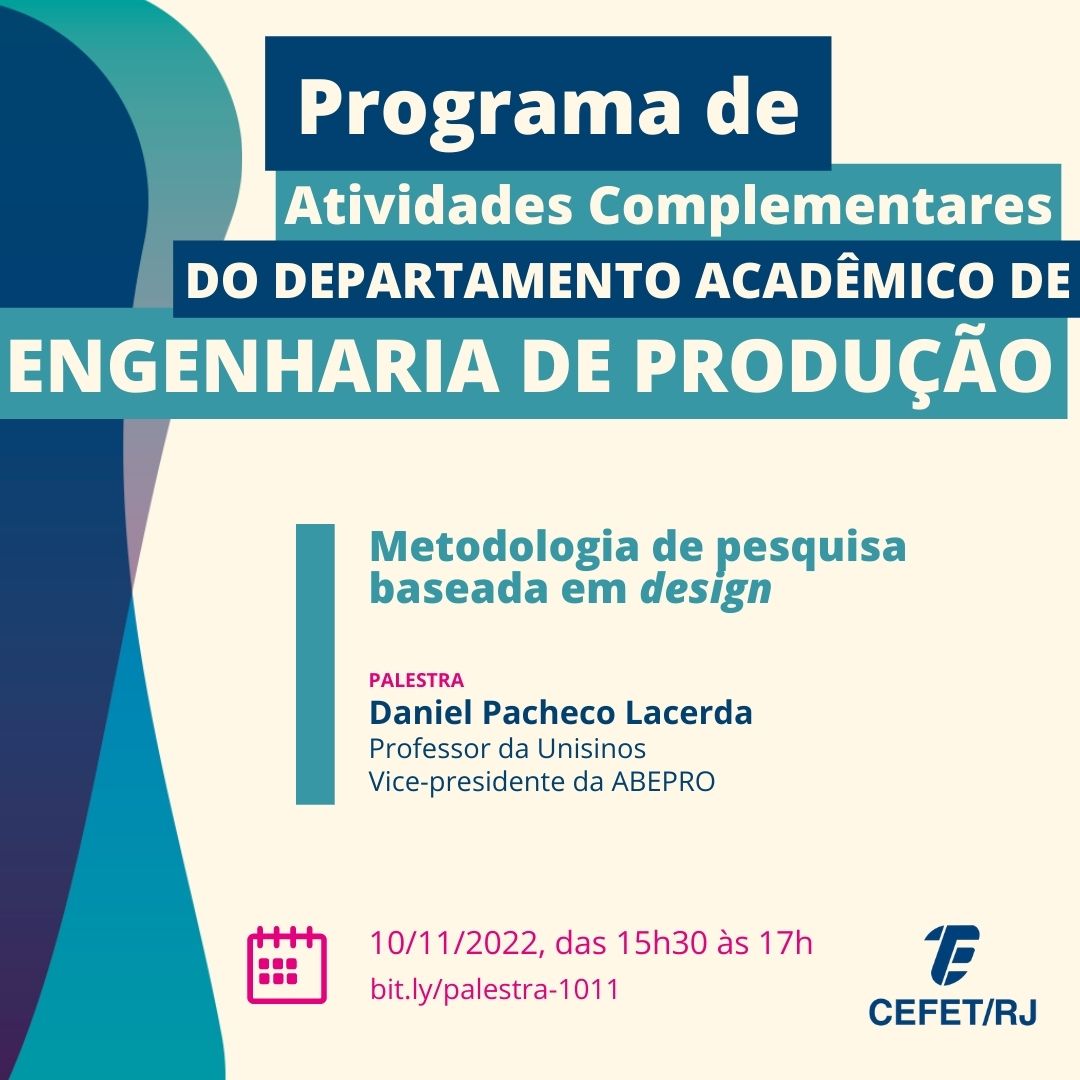 O Programa de Atividades Complementares do Departamento Acadêmico de Engenharia de Produção do Cefet/RJ convida para a palestra “Design Science e Design Science Research na...