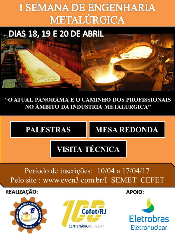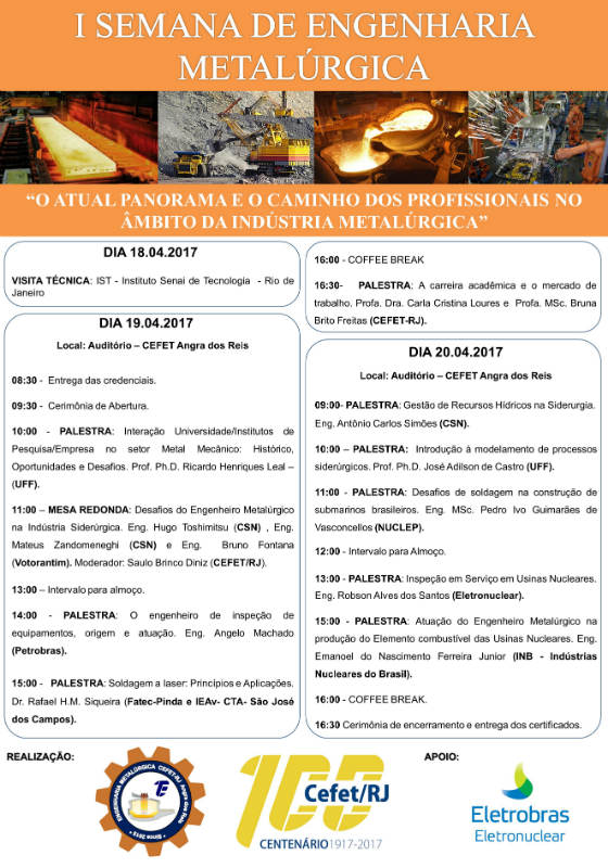 O evento será realizado no campus Angra dos Reis, em comemoração ao Dia do Engenheiro Metalurgista, em 21 de abril, e contará com o apoio da Eletronuclear.
