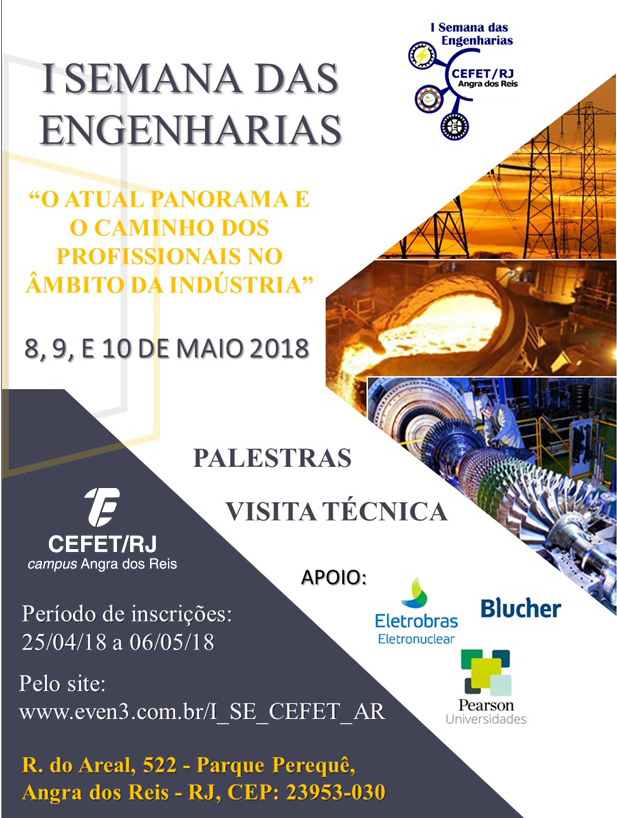 A I Semana das Engenharias do campus Angra dos Reis busca incentivar e mostrar aos alunos o desenvolvimento das engenharias Mecânica, Elétrica e Metalúrgica nas diversas áreas da indústria, por meio de palestras com profissionais atuantes, contribuindo, assim, com sua formação profissional.