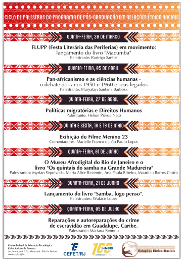 30/03 a 05/07/2017 - Ciclo de palestras do Programa de Pós-graduação em Relações Étnico-Raciais