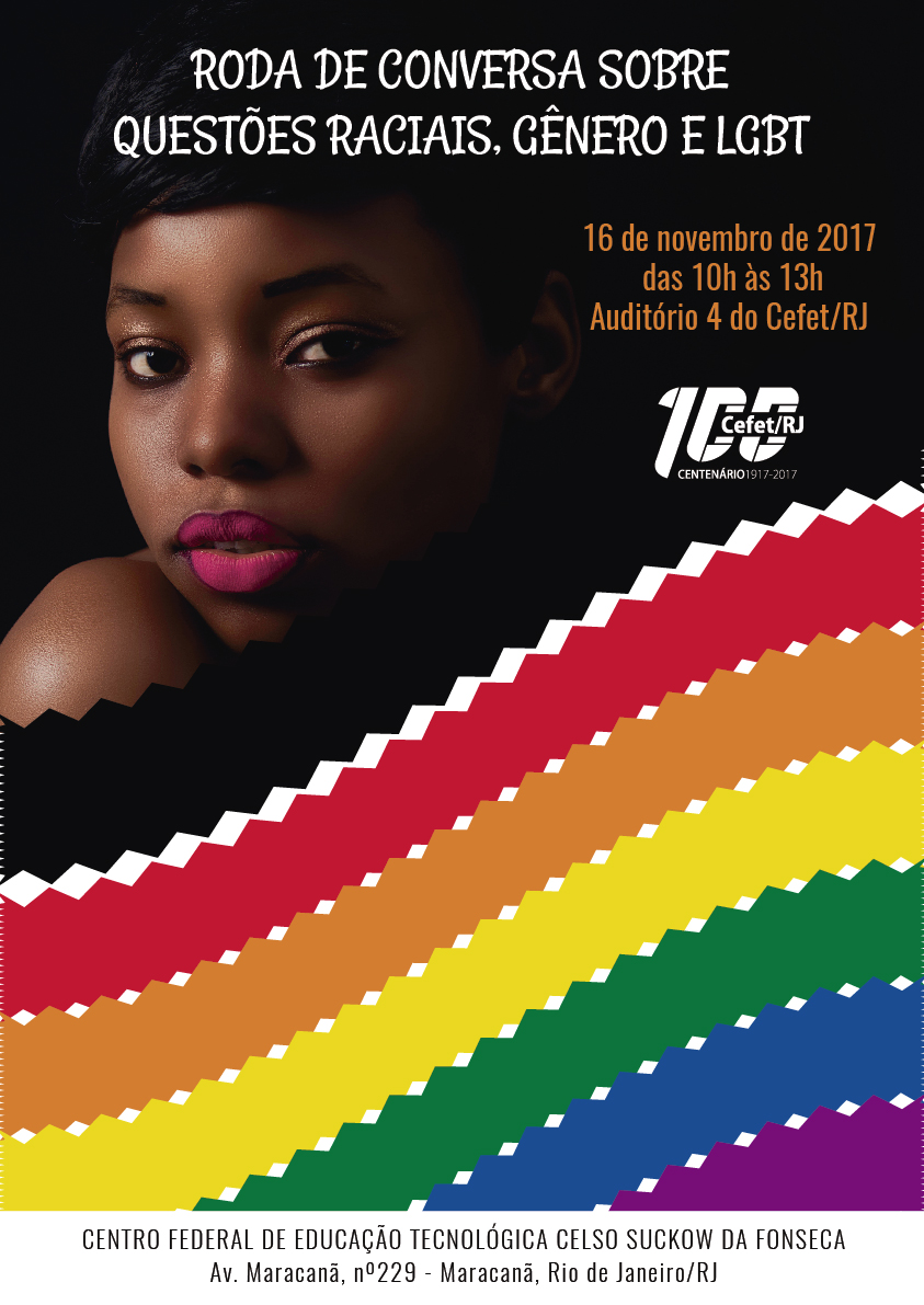 O Departamento de Extensão e Assuntos Comunitários (DEAC) e a Diretoria de Gestão Estratégica (DIGES) convidam para a Roda de Conversa sobre questões raciais, gênero e LGBT, que ocorrerá no dia 16/11, das 10h às 13h, no Auditório IV do campus Maracanã.