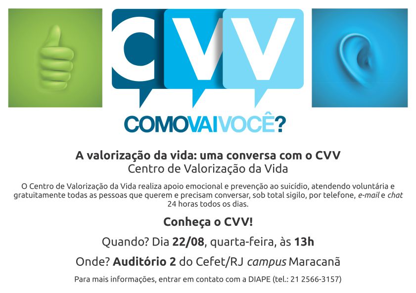 22/08/2018 – Palestra: "A valorização da vida – uma conversa com o CVV"