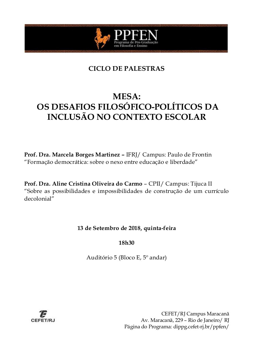 13/09/2018 – Mesa-redonda "Os desafios filosófico-políticos da inclusão no contexto escolar"