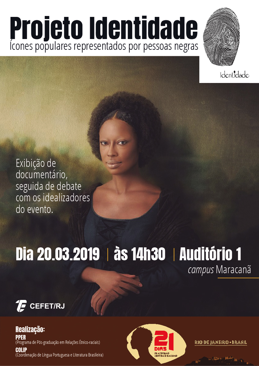 Nos "21 dias de ativismo contra o racismo", o Projeto Identidade exibirá documentário e promoverá debate. "Identidade" é uma exposição fotográfica que apresenta ícones populares (originalmente brancos) representados por pessoas negras. O projeto, idealizado por Noemia Oliveira e Orlando Caldeira, teve início no ano de 2014 (Sesc-Madureira) e, desde então, vem sendo exibido em diferentes espaços culturais.
