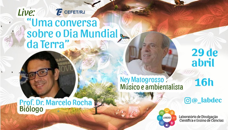 Para celebrar o Dia da Terra, comemorado no dia 22 de abril, o Laboratório de Divulgação Científica e Ensino de Ciências (Labdec) do Cefet/RJ irá promover, no dia 29/04, uma live com o cantor e ambientalista Ney Matogrosso. O evento será transmitido às 16h na página do laboratório no Instagram (@_labdec) e será guiado pelo biólogo e professor Marcelo Borges Rocha, coordenador do Labdec, que está vinculado ao Programa de Pós-graduação em Ciência, Tecnologia e Educação (PPCTE) do Cefet/RJ.
