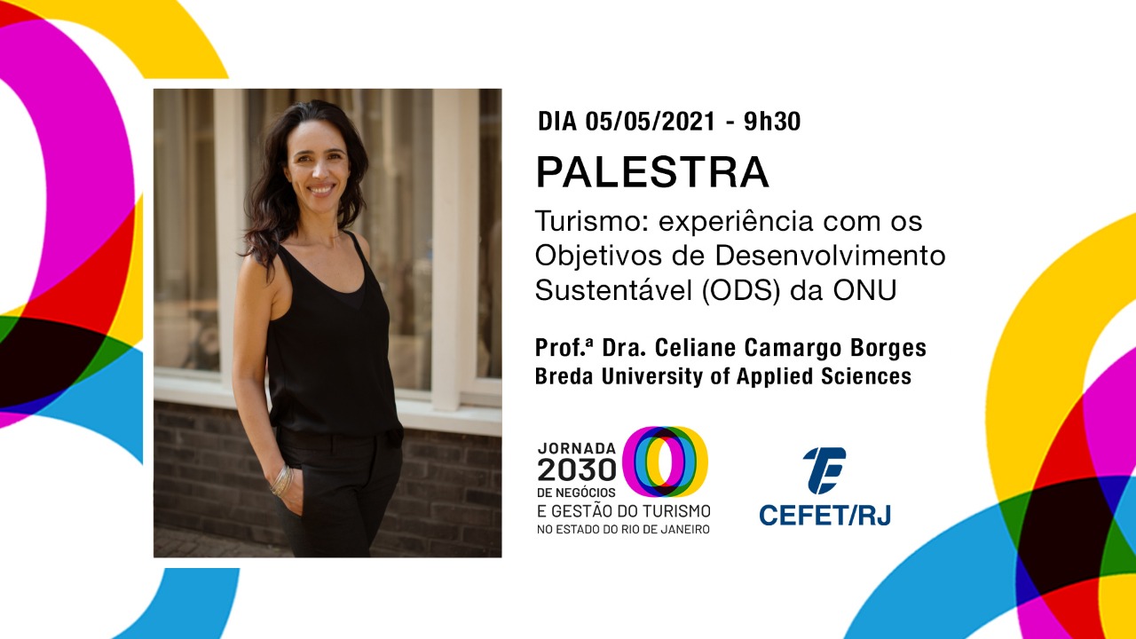 No dia 5 de maio, acontecerá o próximo encontro virtual do ciclo de capacitação promovido pelo projeto de extensão do Cefet/RJ “Jornada 2030 de Negócios e Gestão do Turismo no estado do Rio de Janeiro”. A palestra on-line intitulada “Turismo e a experiência dos Objetivos de Desenvolvimento Sustentável (ODS) da ONU” irá ocorrer às 9h30 no canal do projeto no YouTube, com a participação da Prof.ª Dra. Celiane Camargo Borges.