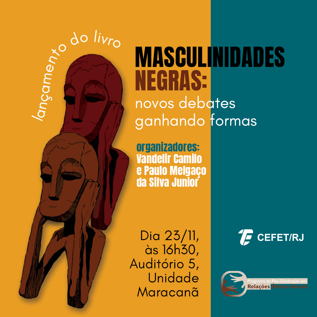 No dia 23 de novembro, o Programa de Pós-Graduação em Relações Étnico-Raciais (PPRER) do Cefet/RJ promoverá o lançamento do livro "Masculinidades negras: novos debates ganhando formas", organizado por Vandelir Camilo e Paulo Melgaço da Silva Junior e publicado pela Ciclo Contínuo Editorial. O evento acontecerá às 16h30, no Auditório 5 da Unidade Maracanã.