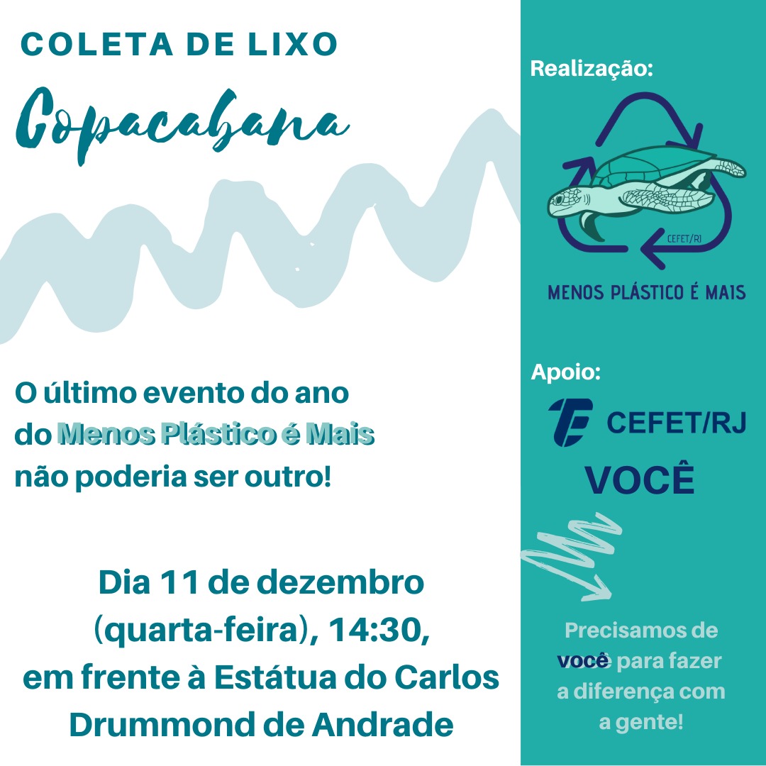 No dia 11 de dezembro, acontecerá o último mutirão de limpeza deste ano do projeto "Menos Plástico é Mais", ocasião em que a Praia de Copacabana receberá uma equipe de estudantes,...