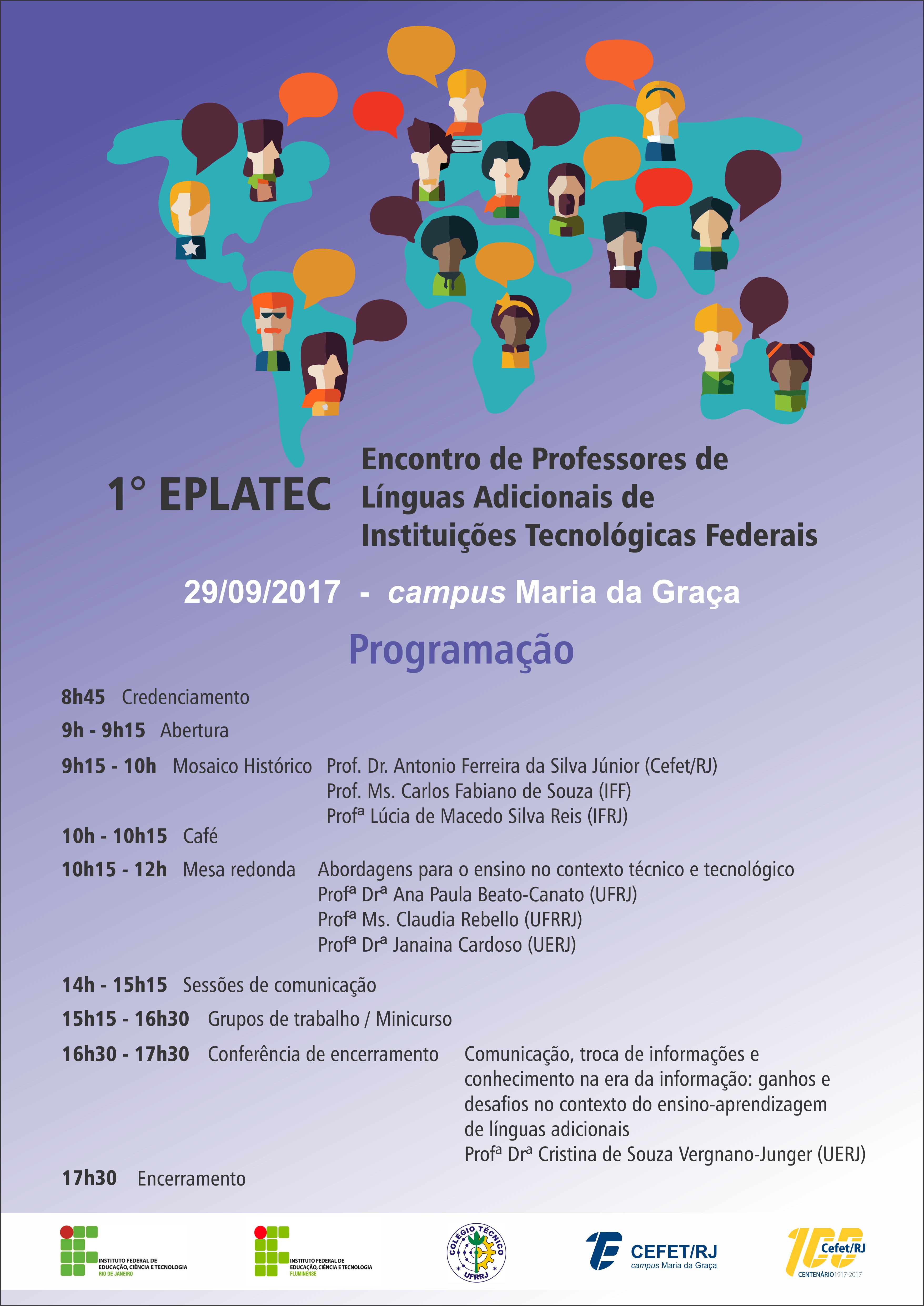 29/09/2017 - 1º EPLATEC - Encontro de Professores de Línguas Adicionais de Instituições Tecnológicas Federais