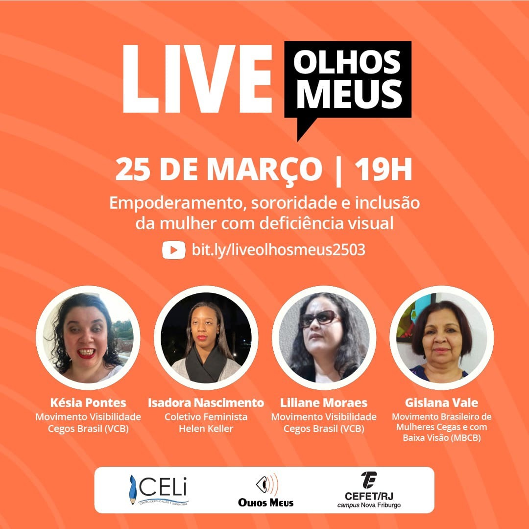 Na próxima quinta-feira (25), o projeto de extensão Olhos Meus, do Cefet/RJ campus Nova Friburgo, realiza a live “Empoderamento, sororidade e inclusão da mulher com deficiência...
