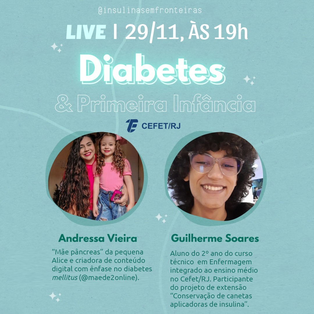 Hoje (29), às 19h, o projeto de extensão do Cefet/RJ Uned Nova Iguaçu “Conservação de canetas aplicadoras de insulina” irá realizar a live “Diabetes e primeira infância”. O...