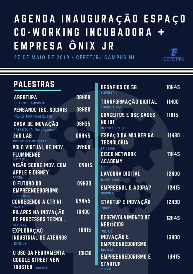 O espaço de co-working será inaugurado no dia 27 de maio, das 8h às 13h30, no Auditório do campus Nova Iguaçu. Confira abaixo a programação.