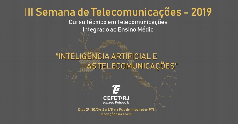 Na próxima segunda-feira, dia 29 de abril, terá início a III Semana de Telecomunicações do Cefet/RJ campus Petrópolis. O tema “Inteligência Artificial e as Telecomunicações” será debatido em quatro dias de evento – que pausa apenas no feriado do Dia do Trabalho (1º de maio) – sempre na parte da tarde. A abertura será realizada no dia 29, às 12h30, no Salão Nobre do campus.