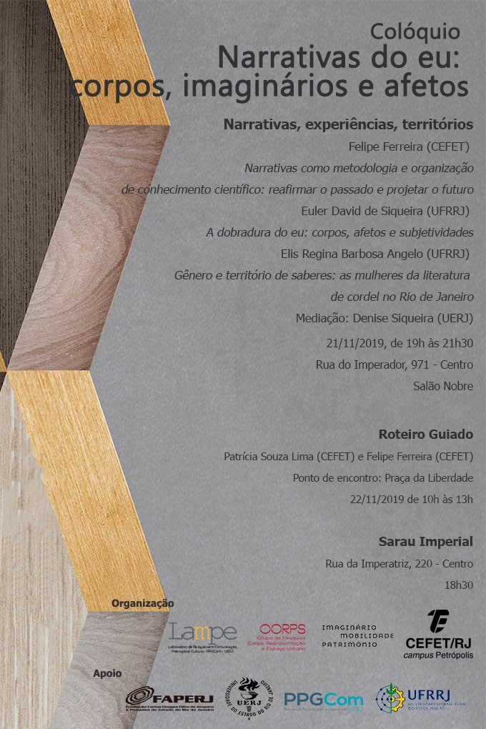 21 e 22/11/2019 – Colóquio “Narrativas do eu: corpos, imaginários e afetos no Rio de Janeiro”