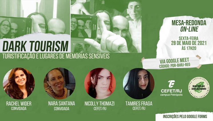 O evento – que faz parte das ações do projeto de extensão “No batuque das águas do Caxambu: projeto de sensibilização e mobilização em Petrópolis/RJ”, do Cefet/RJ campus Petrópolis – busca apresentar o que é o dark tourism e refletir sobre lugares de memórias sensíveis na cidade imperial. A mesa-redonda contará com a participação das historiadoras Rachel Wider e Nara Santana, e das alunas Nicolly Thomazi e Tamires Fraga, bolsistas do projeto.