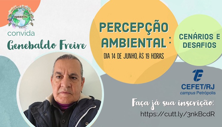 Na próxima segunda-feira, dia 14 de junho, o projeto de extensão Educação Ambiental na Escola, do Cefet/RJ campus Petrópolis, irá realizar a palestra “Percepção ambiental: cenários e desafios”. O evento – que acontecerá a partir das 19h pela plataforma Conferência Web, da RNP – será ministrado por Genebaldo Freire Dias, doutor em Ecologia (UnB) e autor de 19 livros sobre a temática ambiental. Genebaldo tem 44 anos de prática acadêmica e ativismo ambientalista e é o escritor brasileiro mais citado nos processos de Educação Ambiental.