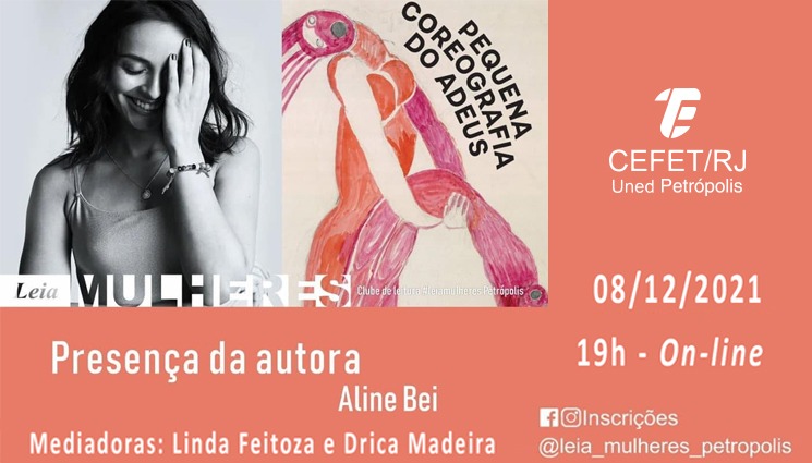 Dezembro promete no clube de leitura Leia Mulheres Petrópolis! O grupo irá debater o livro Pequena coreografia do adeus, com a presença da autora Aline Bei, uma das maiores revelações da literatura brasileira contemporânea. O evento será realizado no dia 8, às 19h, pelo aplicativo Google Meet.