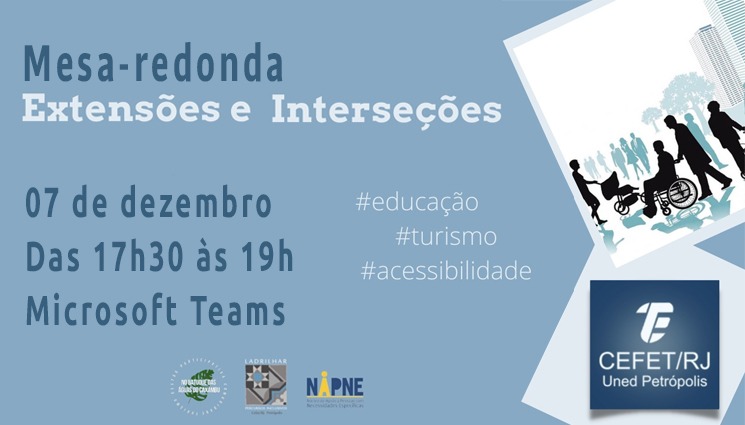 Quatro projetos de extensão atuantes do Cefet/RJ Uned Petrópolis – Ladrilhar, Conhecimento para profissionais do futuro, Diálogos com o Napne-Petrópolis e No batuque das águas do Caxambu – se uniram em torno dos pontos convergentes entre suas experiências, com destaque para o do tema acessibilidade, e organizaram a mesa-redonda “Extensões e interseções”. O evento, que será on-line e gratuito, acontecerá na próxima terça-feira, dia 7 de dezembro, das 17h30 às 19h.