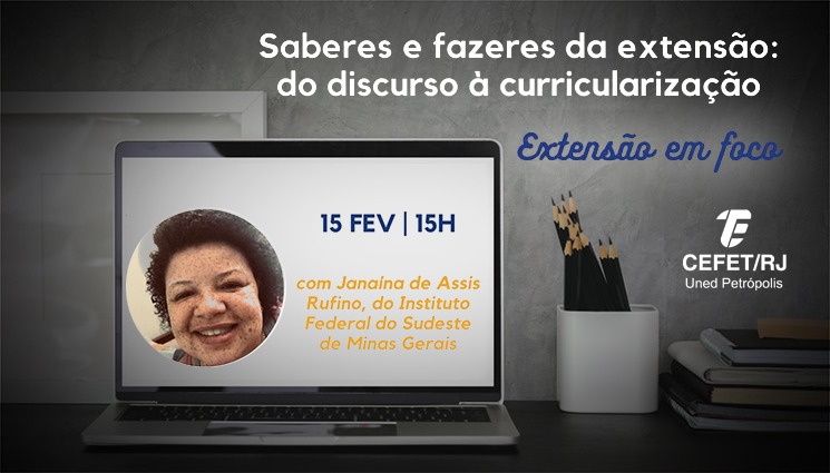 Na próxima terça-feira, dia 15 de fevereiro, a Gerência Acadêmica do Cefet/RJ Uned Petrópolis promoverá a palestra “Saberes e fazeres da extensão: do discurso à curricularização”, que será ministrada pela professora Janaína de Assis Rufino, do Instituto Federal do Sudeste de Minas Gerais. O evento faz parte da série “Extensão em foco”, que busca debater as práticas extensionistas e as concepções relacionadas à extensão universitária.