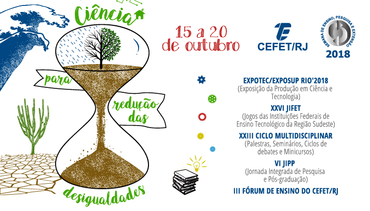 A Semana Nacional de Ciência e Tecnologia (SNCT) ocorrerá entre os dias 15 e 21 de outubro de 2018. Assim como em anos anteriores, em 2018, a Semana de Ensino, Pesquisa e Extensão, evento anual promovido pelo Cefet/RJ, será realizada no mesmo período em todos os campi. O tema deste ano será “Ciência para redução das desigualdades”.