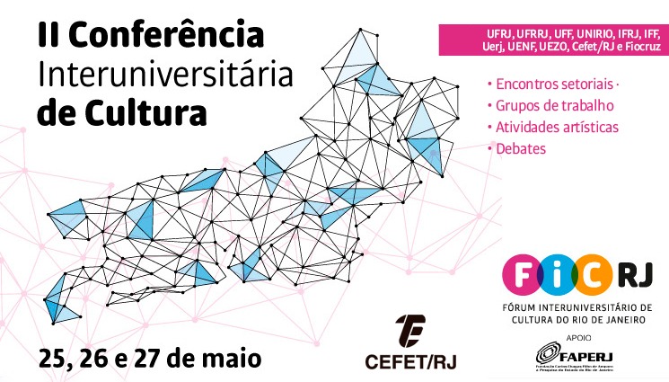 A II Conferência Interuniversitária de Cultura, que acontecerá nos dias 25, 26 e 27 de maio, reunirá representantes de dez instituições públicas de ensino superior e de pesquisa do estado do Rio de Janeiro e também contará com a participação de artistas, professores, alunos, pesquisadores e técnicos vinculados a essas instituições e da sociedade em geral. A programação será totalmente remota e transmitida por meio do YouTube e do Zoom.