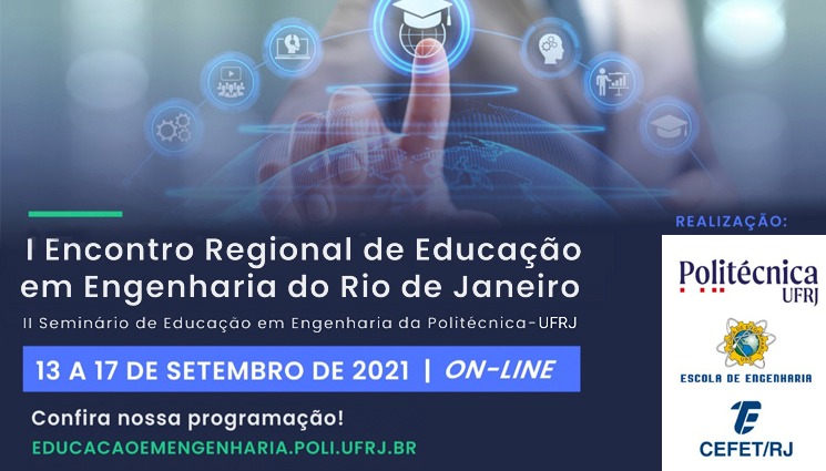 A Direção-Geral do Cefet/RJ convida todos para o I Encontro Regional de Educação em Engenharia do Rio de Janeiro e para o II Seminário de Educação em Engenharia da Politécnica-UFRJ, que serão realizados entre os dias 13 e 17 de setembro, pelo YouTube.