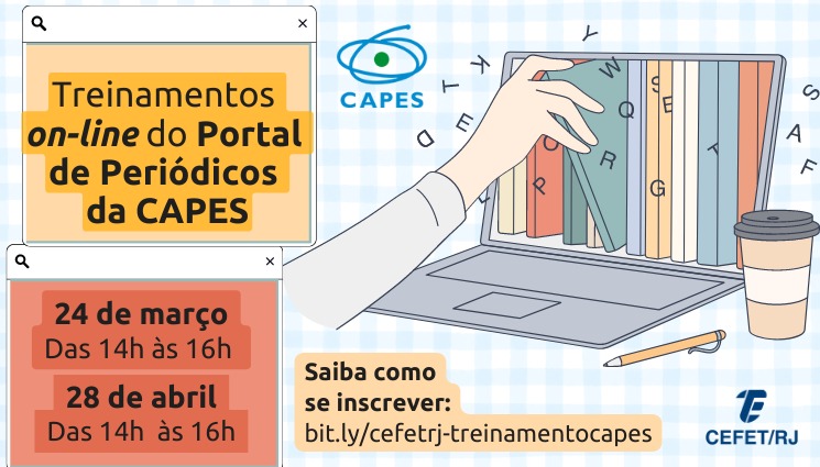 A Direção-Geral, por meio da Diretoria de Pesquisa e Pós-Graduação (DIPPG), comunica que, nos dias 24 de março e 28 de abril de 2023, haverá treinamento sobre o Portal de Periódicos da Coordenação de Aperfeiçoamento de Pessoal de Nível Superior (CAPES). Os treinamentos são direcionados aos alunos de todos os níveis de ensino e abrangem as mais diversas áreas do conhecimento.