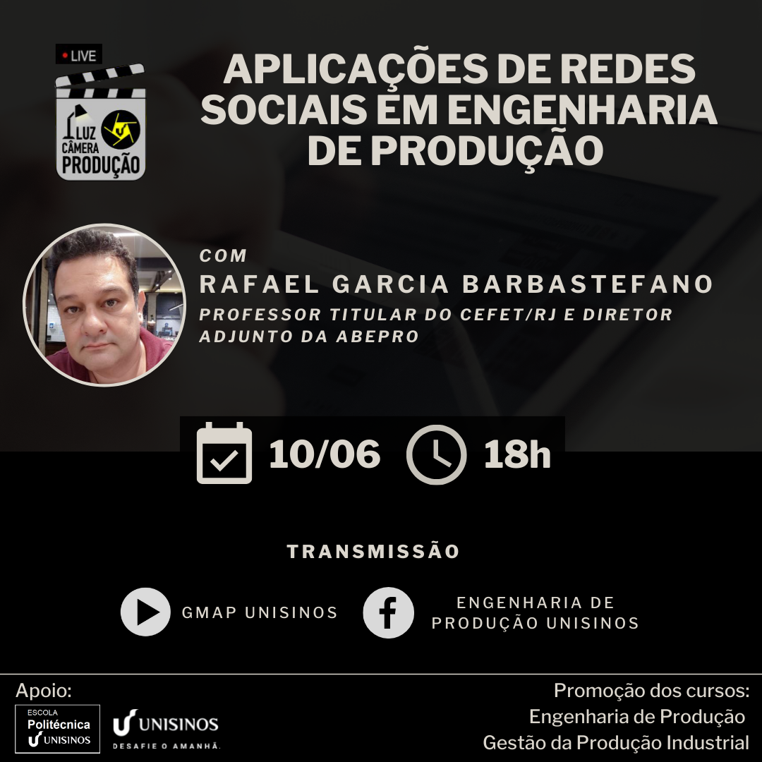 Na quinta-feira (10), o professor do Cefet/RJ campus Maracanã Rafael Barbastefano ministrará a palestra on-line “Aplicações de redes sociais em Engenharia de Produção”. A...