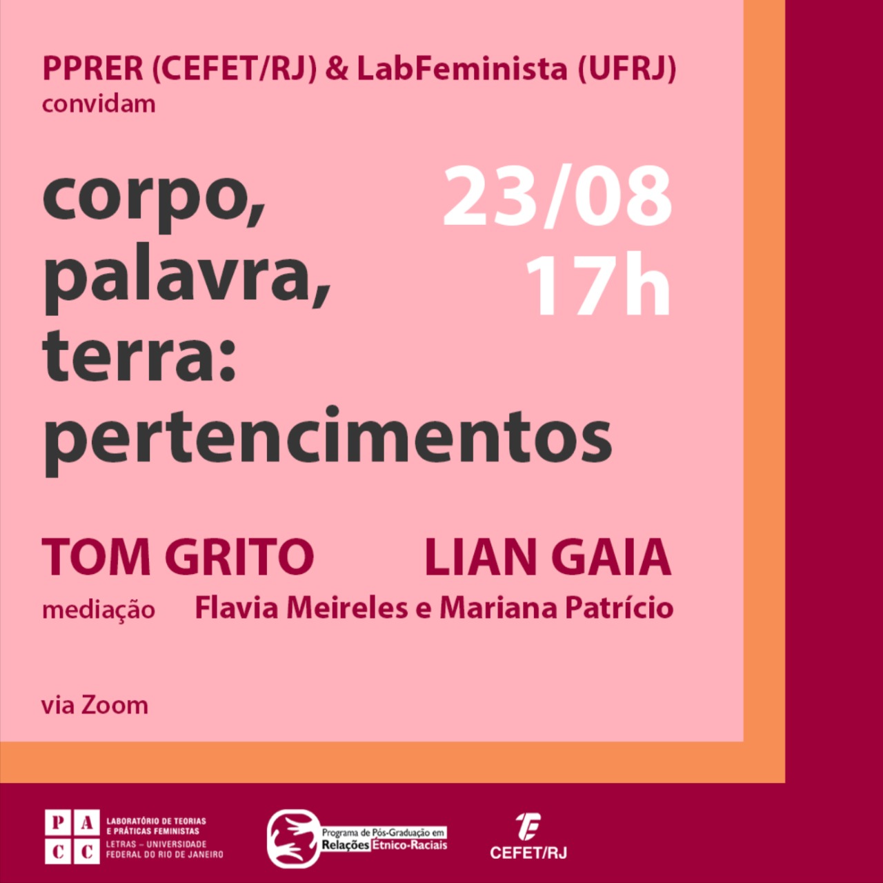 O Programa de Pós-Graduação em Relações Étnico-Raciais (PPRER) do Cefet/RJ convida a comunidade da instituição para participar do encontro on-line “Corpo, palavra e terra:...