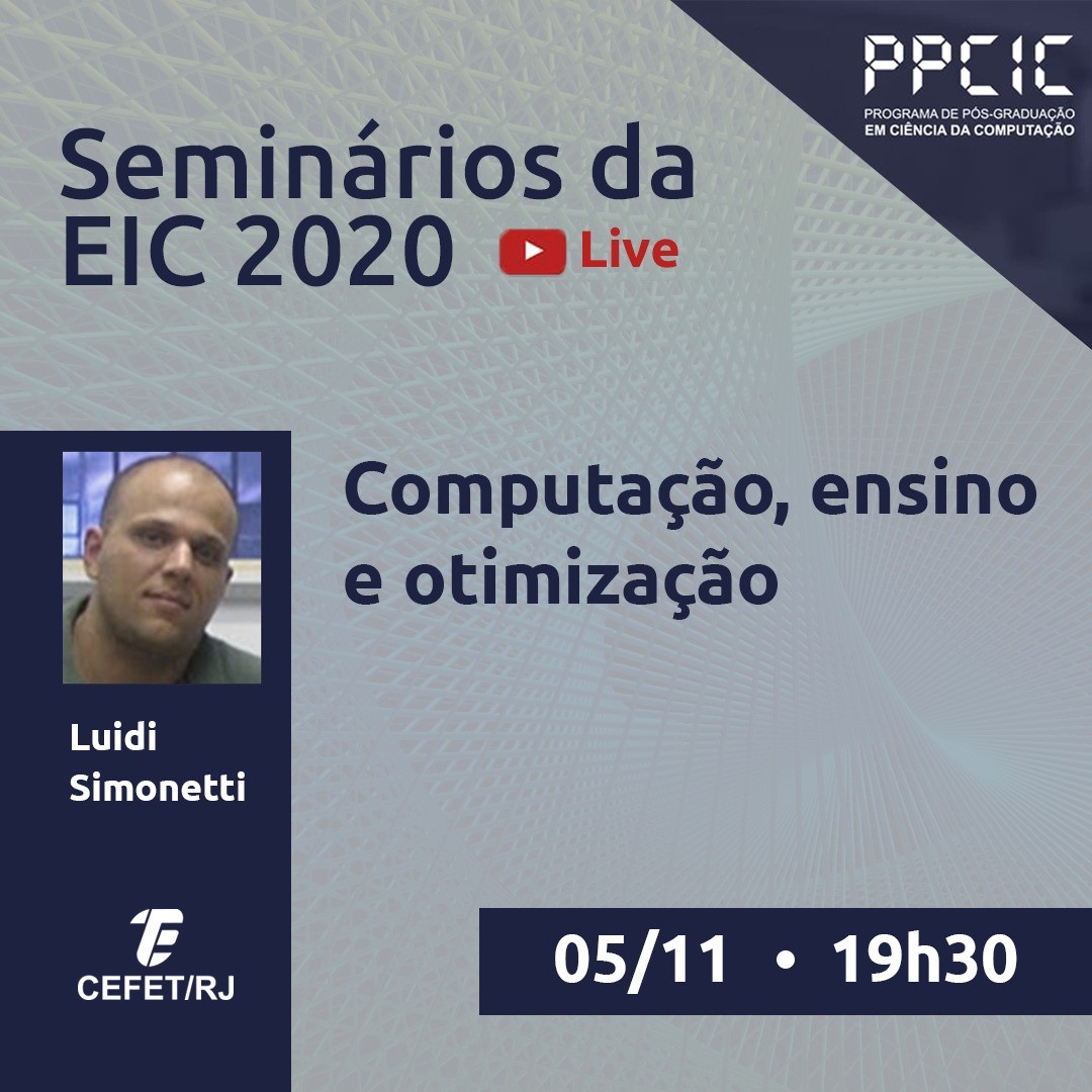 A live desta quinta-feira (29) do Seminário da Escola de Informática & Computação (EIC) – organizado pelo Programa de Pós-graduação em Ciência da Computação (PPCIC) do...