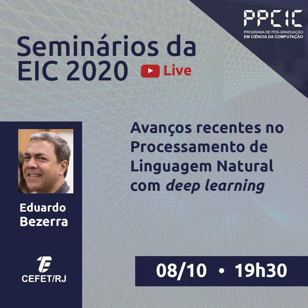 O projeto Seminários da Escola de Informática e Computação (SEIC) realizará, na quinta-feira (8), uma live com o tema “Avanços recentes no Processamento de Linguagem Natural com...