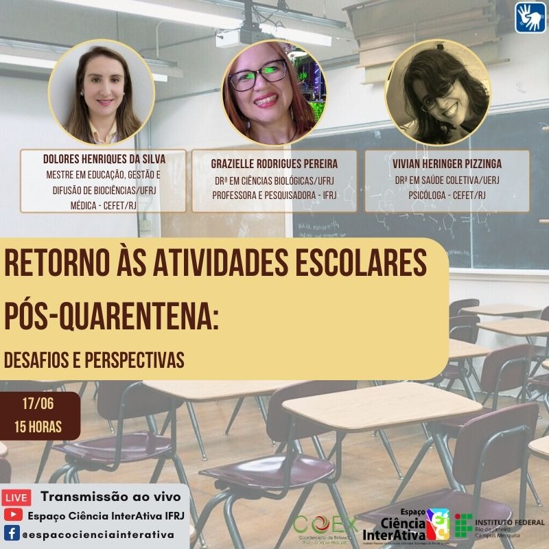Nesta quarta-feira, 17 de junho, a médica Dolores Silva e a psicóloga Vivian Pizzinga, do Cefet/RJ, irão participar de um bate-papo on-line com a professora e pesquisadora em ciências...