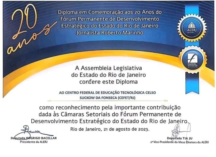 Em 2023, o Cefet/RJ foi reconhecido pela sua contribuição às Câmaras Setoriais do Fórum.