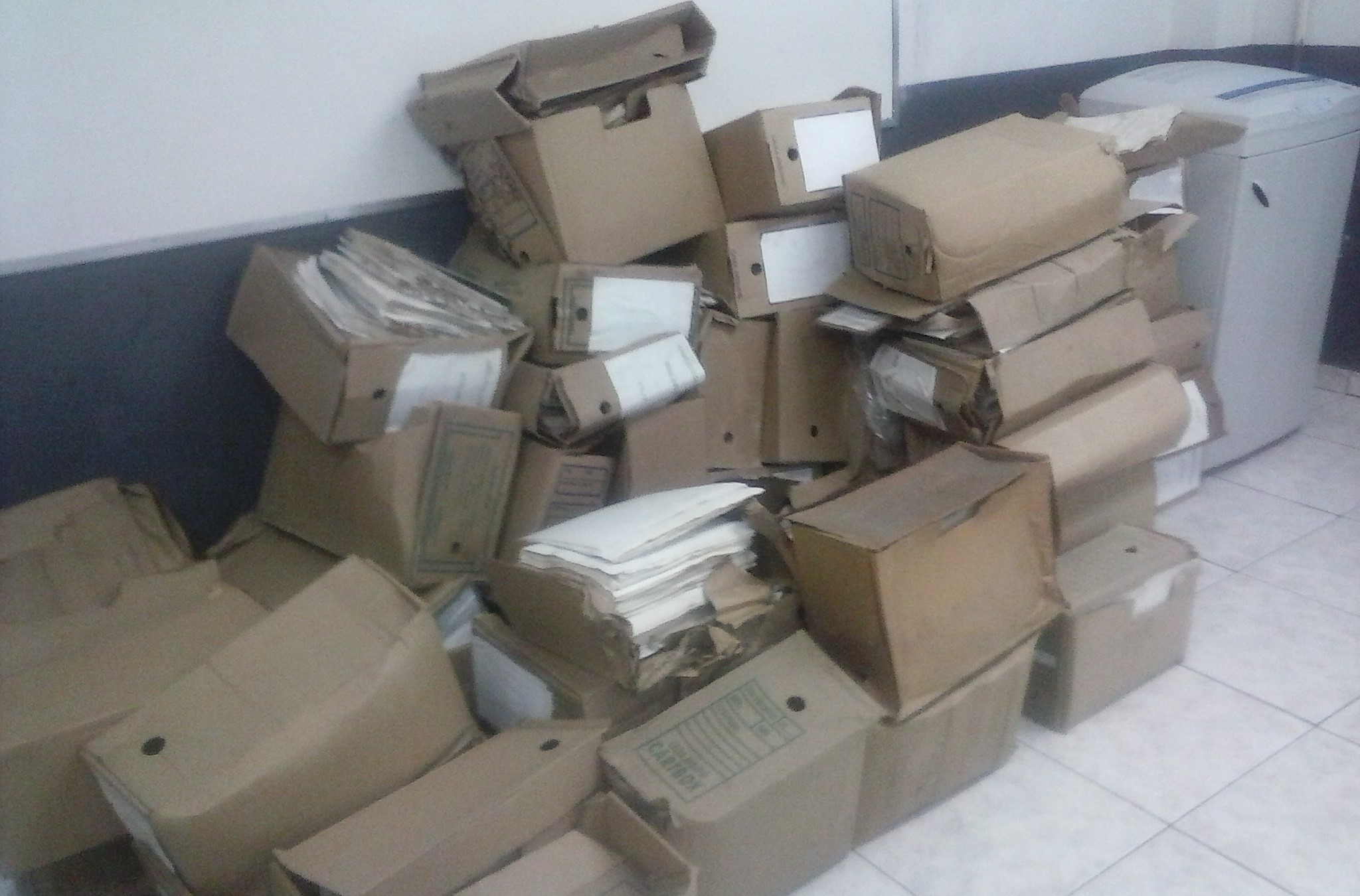 Foram eliminados 22 metros lineares de documentos. Esta eliminação, de menor escala, foi feita pelos próprios servidores do Arquivo Geral.