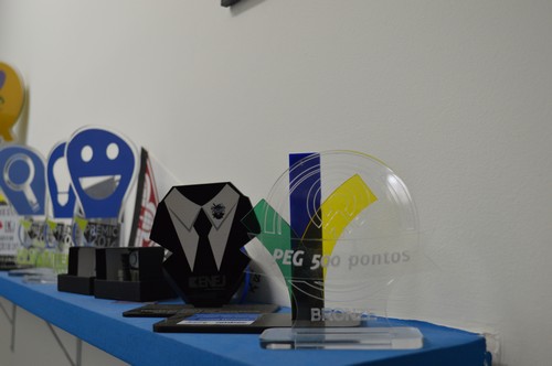 Troféu PEG 500 pontos, junto a outros prêmios recebidos pela Cefet Jr. Consultoria |
